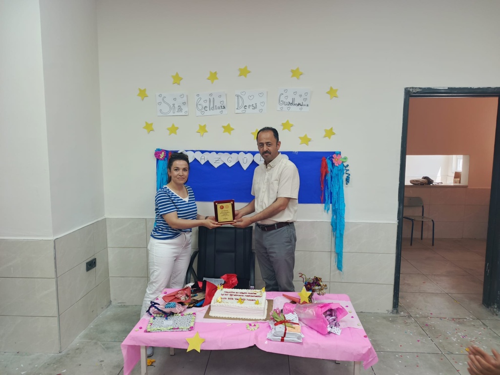 Okulumuzdan tayini çıkan Türkçe Öğretmeni Yazgülü Kılınç hocamıza Okul Müdürümüz Serdar Vuruşkan tarafından plaket verilerek okulumuza verdiği emeklerden dolayı teşekküretti.